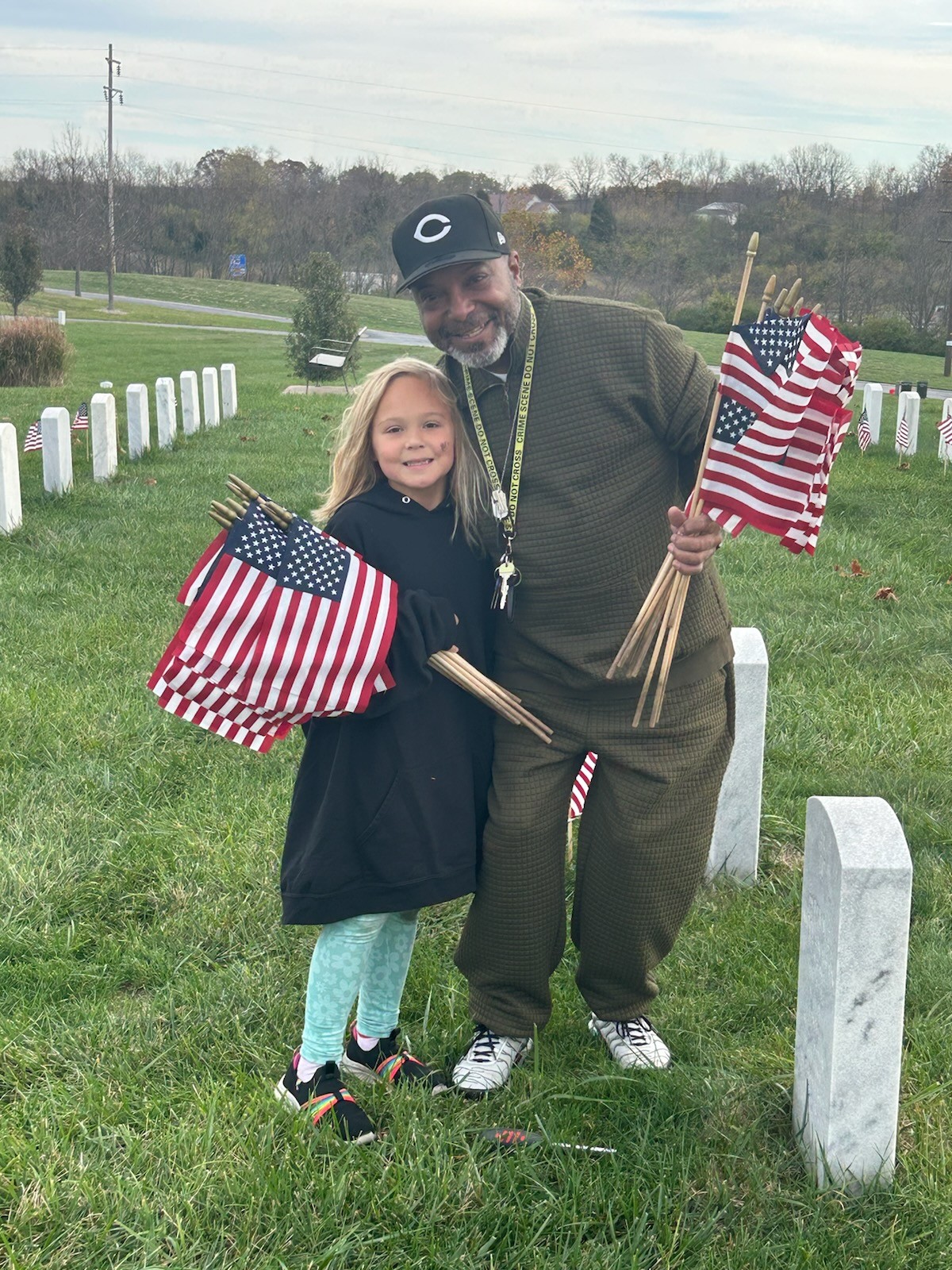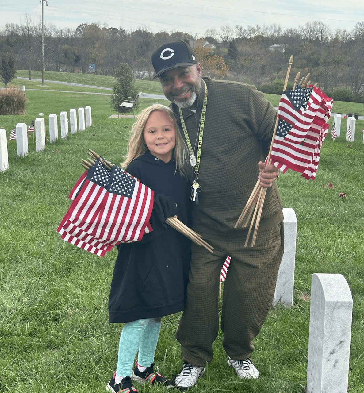 Flag Placement at Veterans Cemetery for Memorial Day